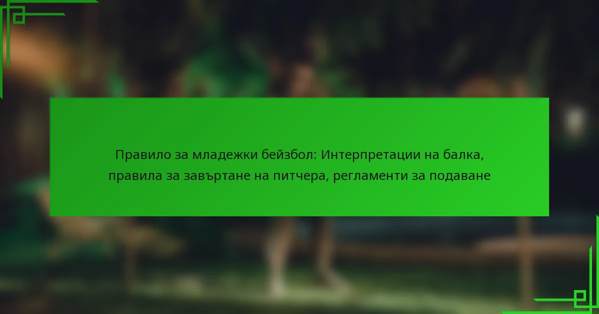 Младежкият бейзбол има специфични правила относно интерпретацията на балка, начина на подаване и регулациите за доставка, за да насърчи честната игра и безопасността. Правилото за балка предотвратява измамата на бегачите на база от питчърите чрез незаконни движения, докато правилата за начина на подаване очертават необходимите движения, за да се избегнат наказания. Освен това, регулациите за доставка се фокусират върху правилната механика, осигурявайки на младите питчъри ефективно развитие на уменията и спазване на стандартите на играта.