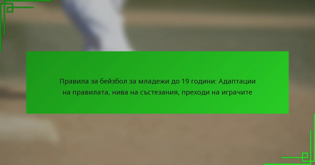 Адаптациите на правилата в младежкия бейзбол, особено за играчи до 19 години, значително влияят на представянето на играчите, променяйки динамиката на играта и стратегиите. Тези промени могат да подобрят конкурентния баланс, като същевременно представят предизвикателства за преходите на играчите от младежкия бейзбол към по-високи нива на конкуренция.