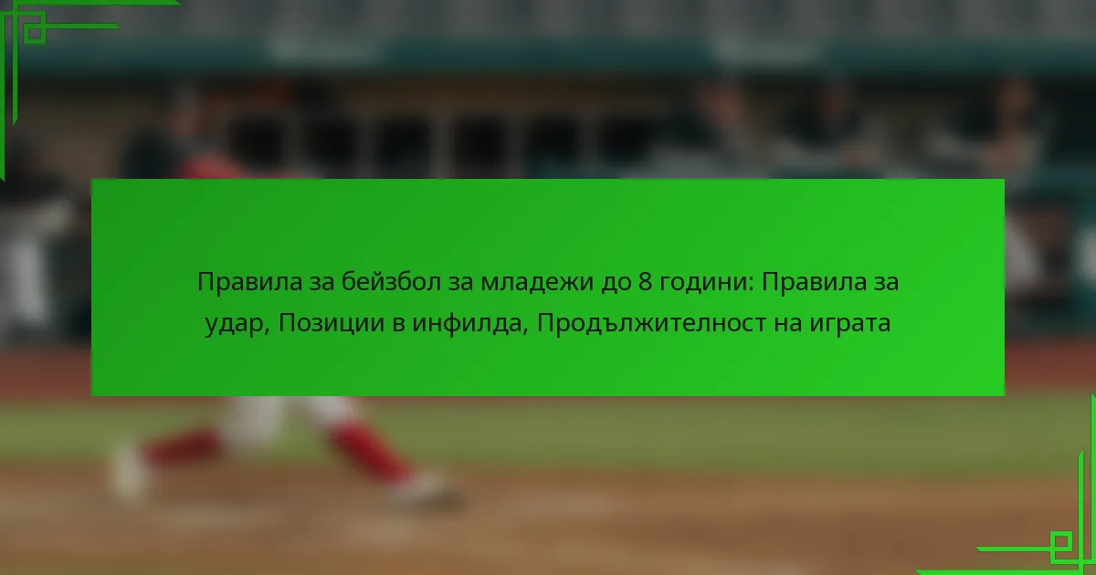 В бейзбола за младежи до 8 години, правилата са проектирани да насърчават забавна и образователна атмосфера, като приоритетно се акцентира на безопасността и честната игра. Насоките за удар, позициите в инпилда и продължителността на играта са структурирани, за да помогнат на младите играчи да развият своите умения и разбиране на играта. С конкретни роли за всяка позиция в инпилда и игри, продължаващи от един до два часа, играчите учат на работа в екип и спортен дух в подкрепяща среда.