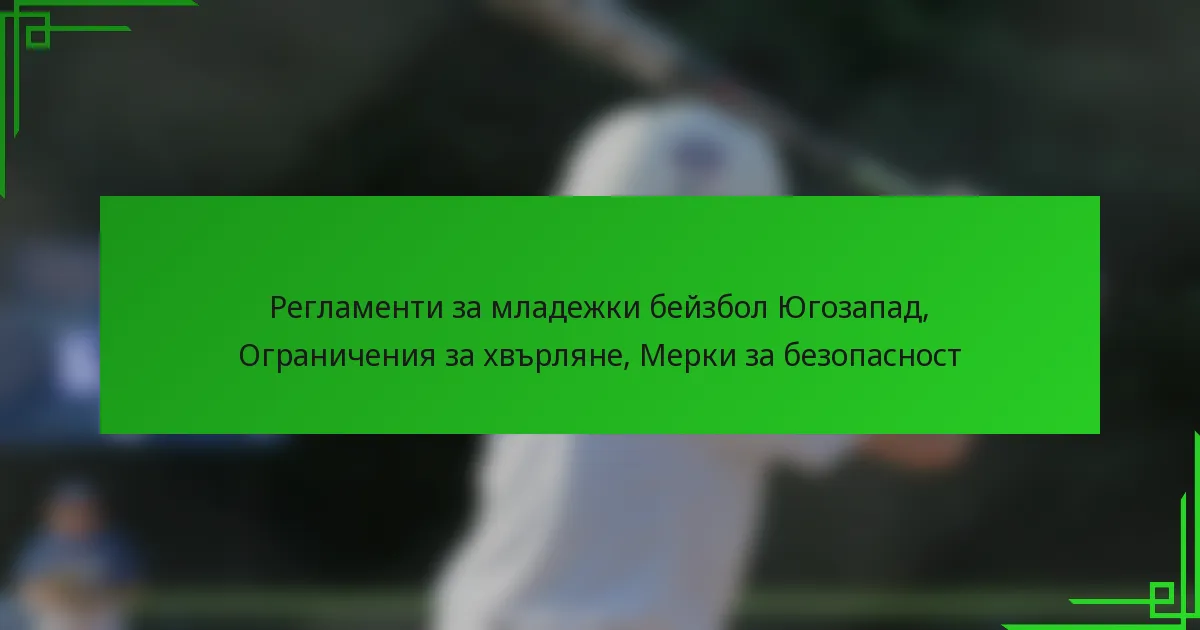 Младежкият бейзбол в Югозапада е структуриран около регулации, които насърчават честната игра, безопасността и развитието на младите атлети. Основните компоненти включват възрастови дивизии, критерии за допустимост и специфични ограничения за хвърляне, проектирани да защитят развиващите се ръце на играчите. Освен това, се прилагат обширни мерки за безопасност, за да се създаде сигурна игрова среда, включваща задължително оборудване, поддръжка на игрищата и обучение за треньори и родители.