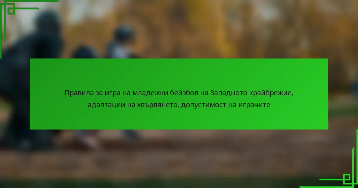 Младежкият бейзбол на Западното крайбрежие се управлява от уникални правила на играта, които се различават от националните стандарти, което прави важно за играчите, треньорите и родителите да се запознаят с тези регулации. Освен това, адаптациите в хвърлянето се фокусират върху безопасността на играчите и развитието на уменията, като включват правила, основани на възрастта, и ограничения на броя на хвърлянията. Разбирането на критериите за допустимост на играчите, включително възрастови ограничения и изисквания за местоживеене, е от съществено значение за осигуряване на правилно участие в местните лиги.